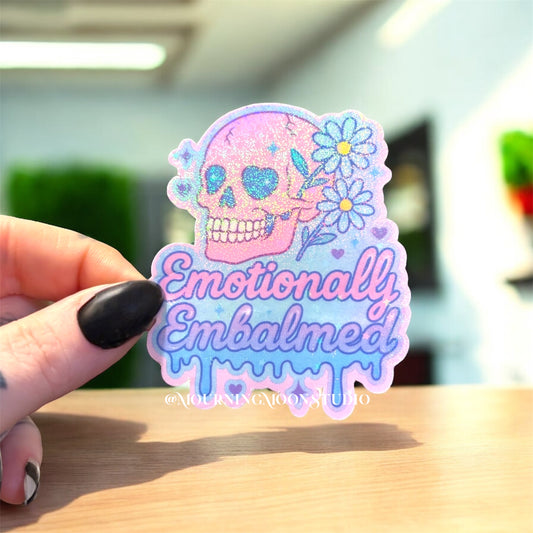 Emotionally Embalmed Holographic Sticker | Pastel Gothic Skull & Flowers | Glitter Vinyl Sticker | Spooky Cute Aesthetic Gift