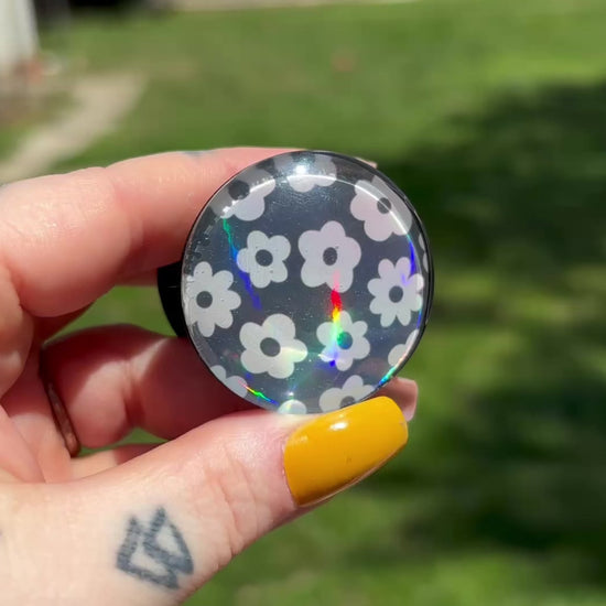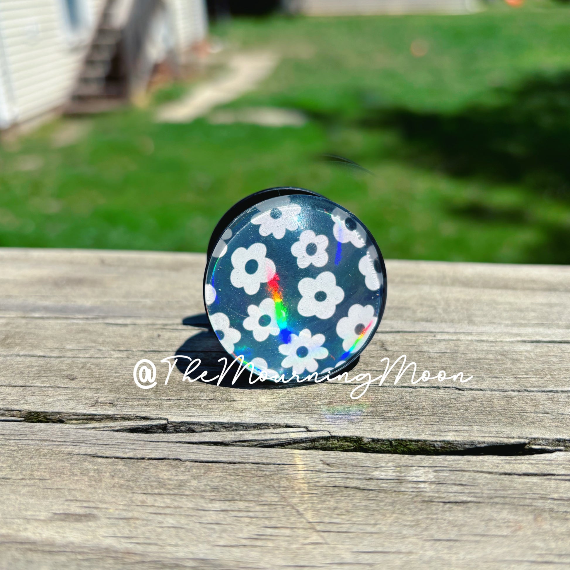 Add a dash of eerie charm and a sprinkle of sparkle to your phone! This mystical grip features a smooth glass half-sphere that magnifies the original artwork beneath—sealed with shimmering holographic sparkles that catch the light like tiny enchanted stars.