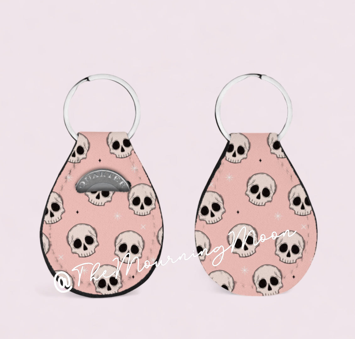 This pastel skull coin holder keychain is a practical and stylish accessory for any on-the-go individual.