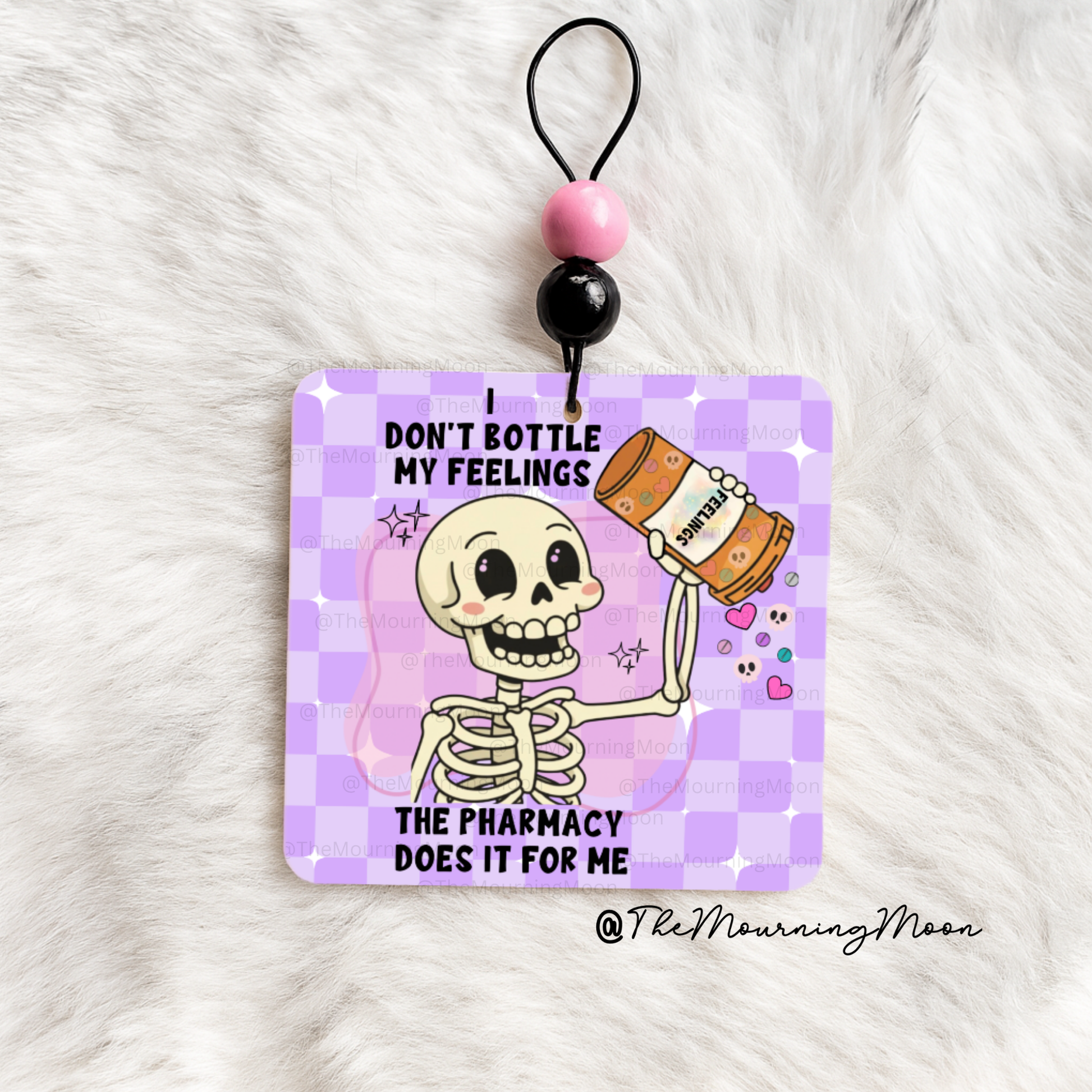 I don’t bottle my feelings, the pharmacy does air freshener - car freshie - scented - skeleton - spooky - pastel goth