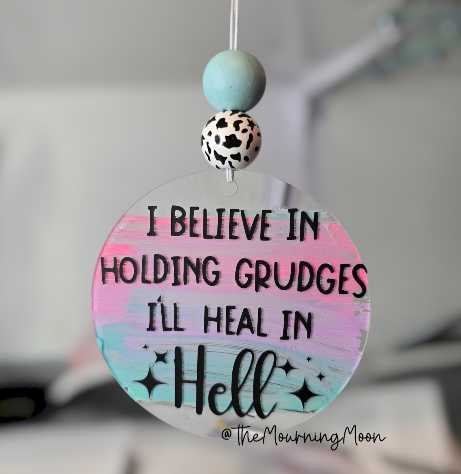 • Charm is acrylic, hung with elastic and 2 wooden accent beads.