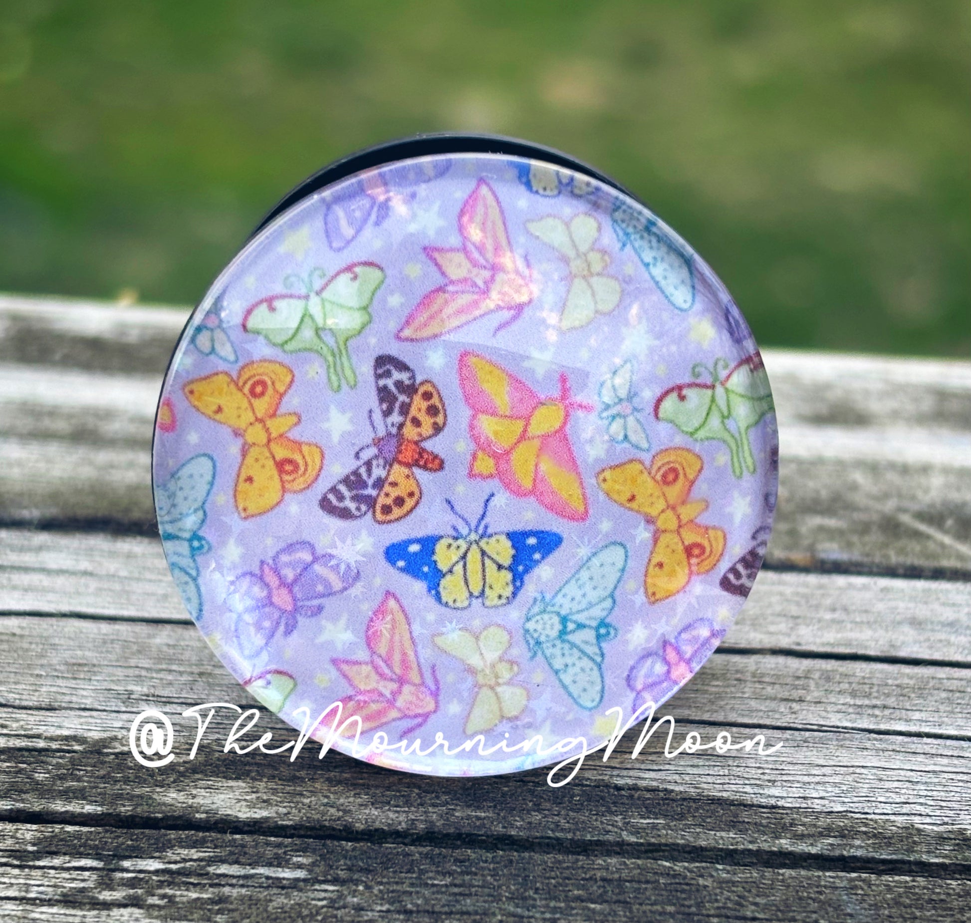 Add a dash of eerie charm and a sprinkle of sparkle to your phone! This mystical grip features a smooth glass half-sphere that magnifies the original artwork beneath—sealed with shimmering holographic sparkles that catch the light like tiny enchanted stars.