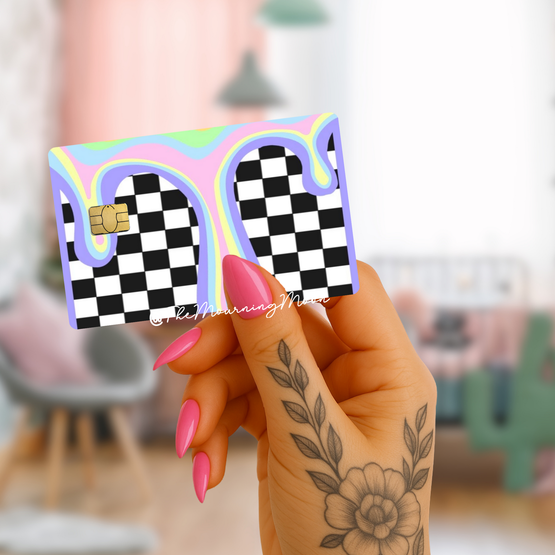 Rainbow drip checkered credit card skin