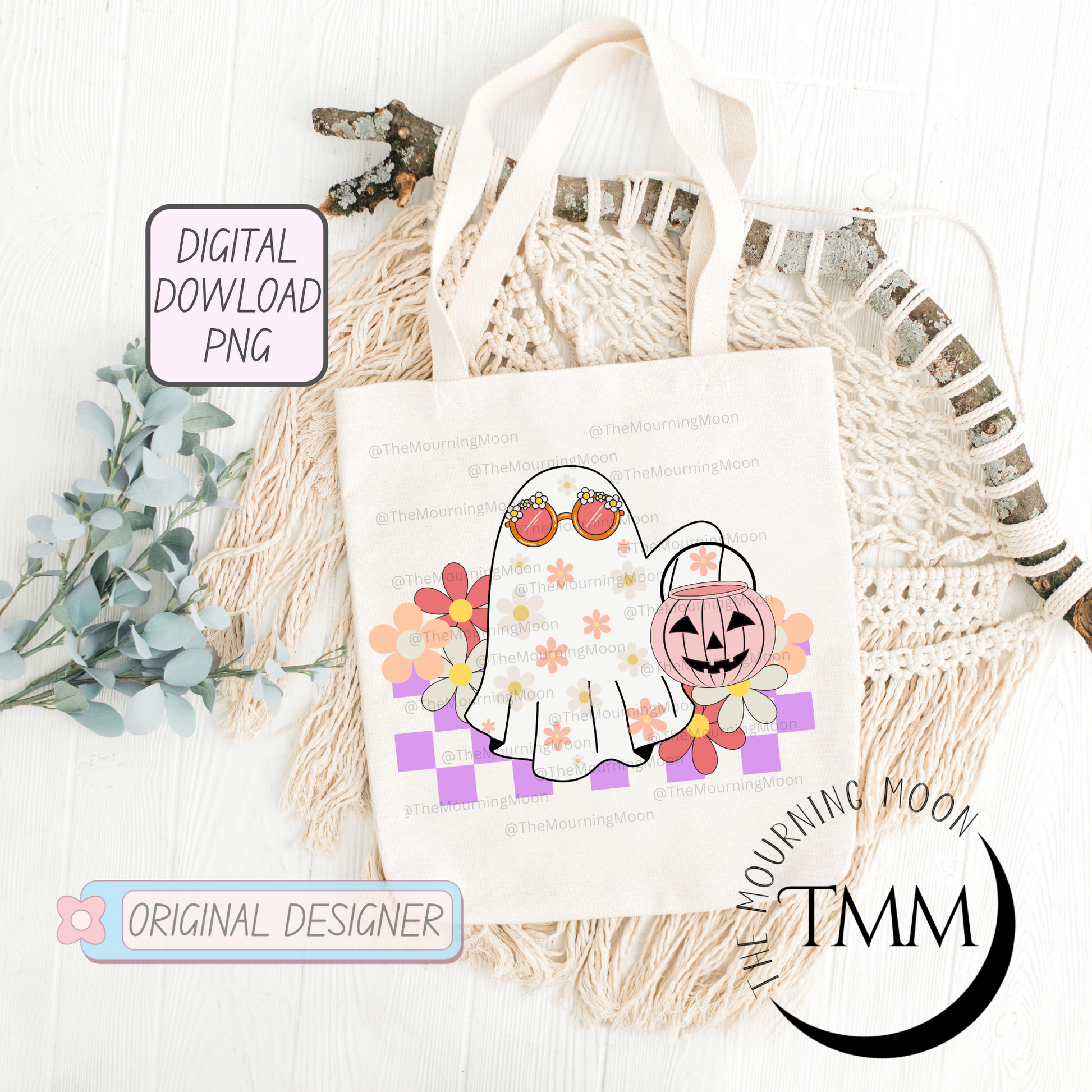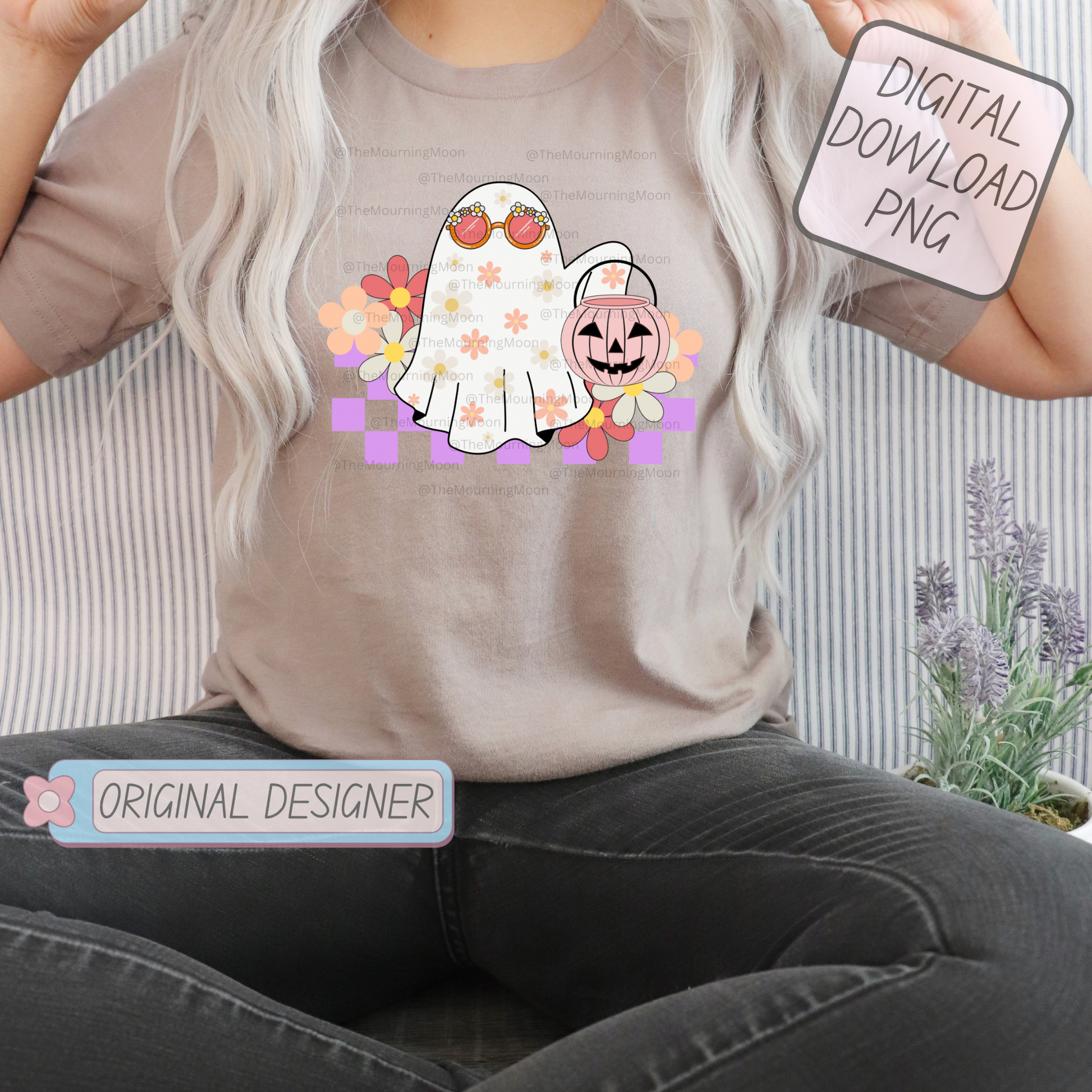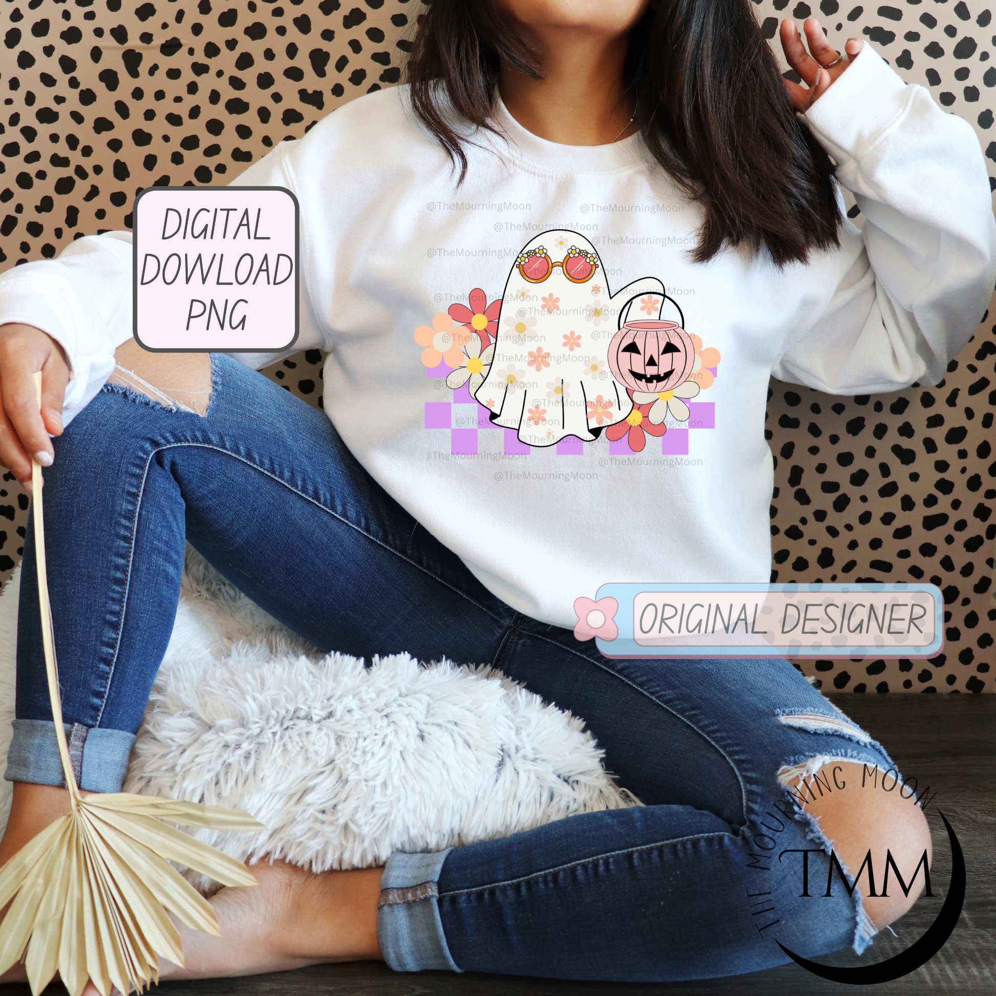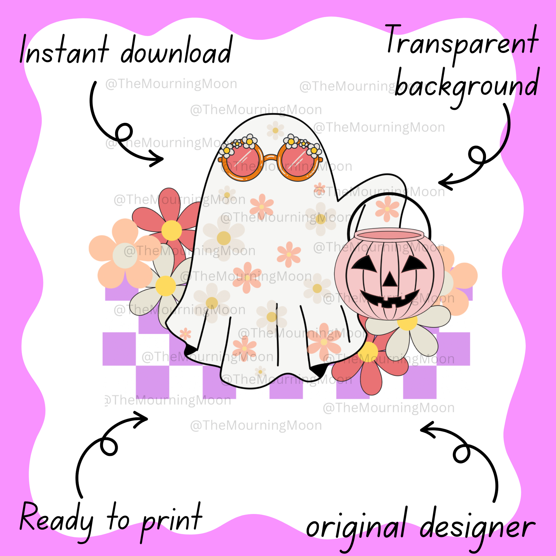 Retro floral halloween ghost png digital download